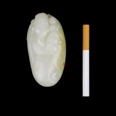新疆和田玉黄皮白玉籽玉把件  童子戏财神  157克 全部图片 移动端