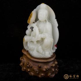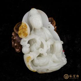 新疆和田玉红皮白玉籽玉摆件 持莲观音 510克 全部图片 移动端