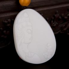 新疆和田玉白皮羊脂白玉籽玉玉牌 童子拜观音 92.6克 全部图片 移动端